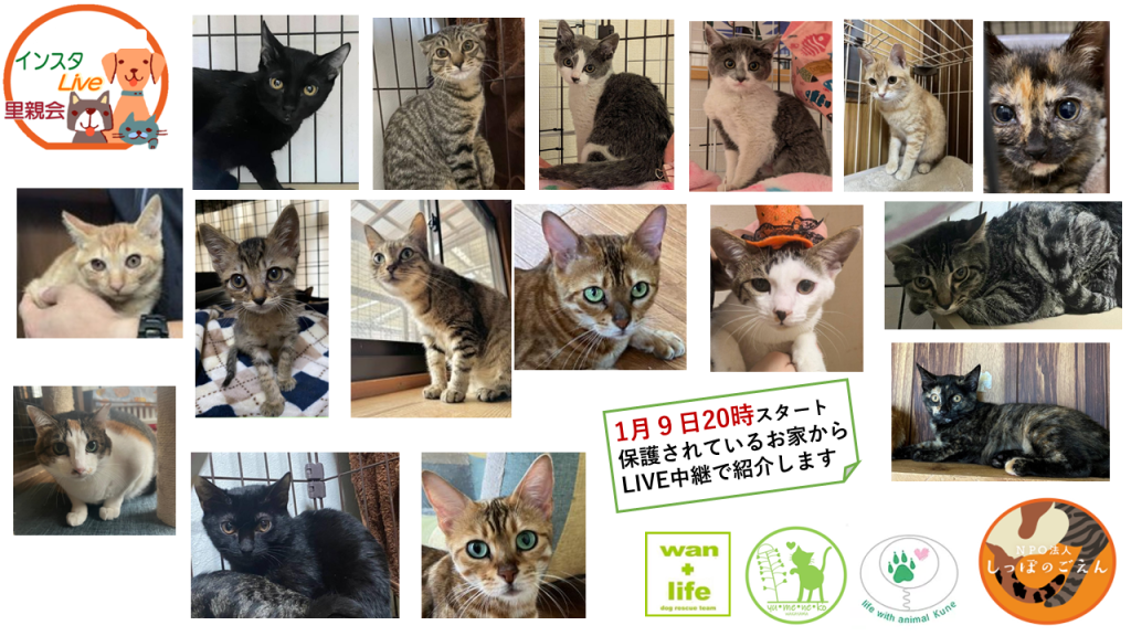 1月9日20時から 里親会インスタLIVE🐱😸😺
