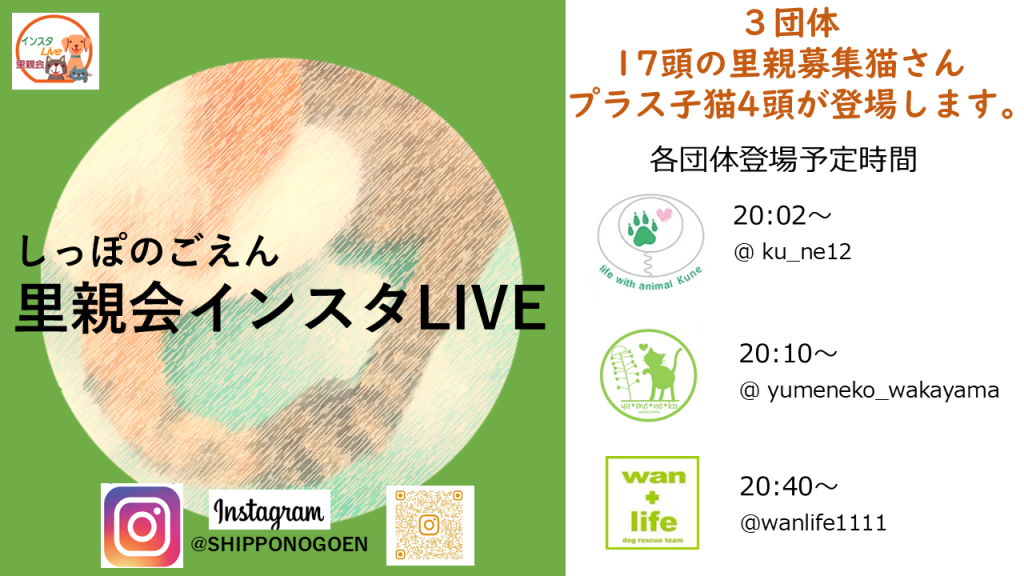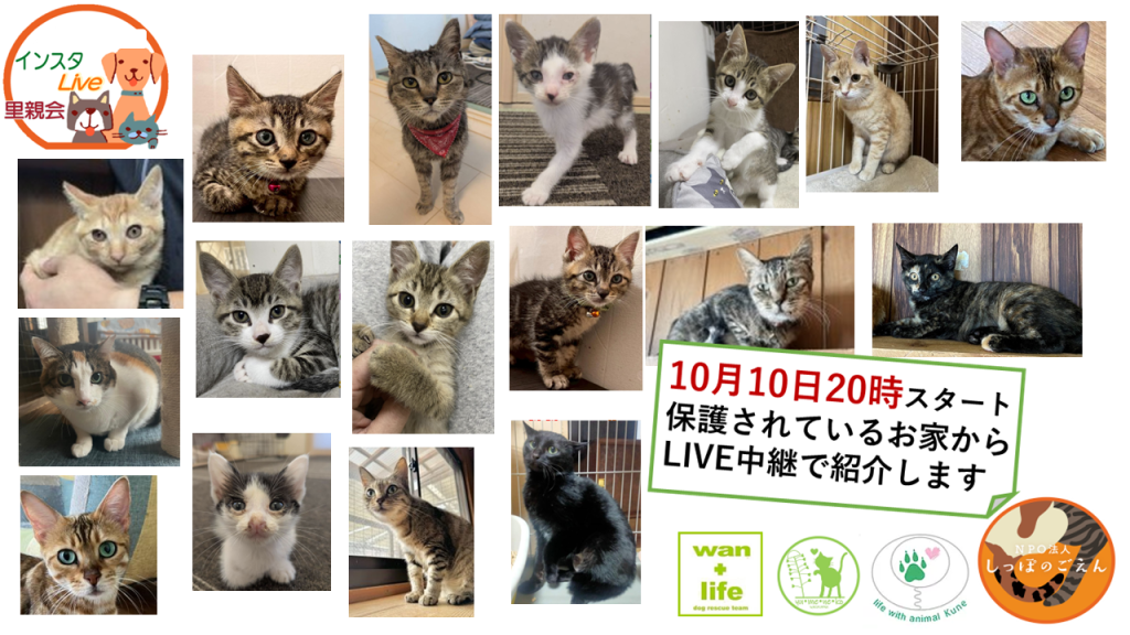 10月の里親会インスタLIVEは3団体17頭の保護猫さんが参加します。