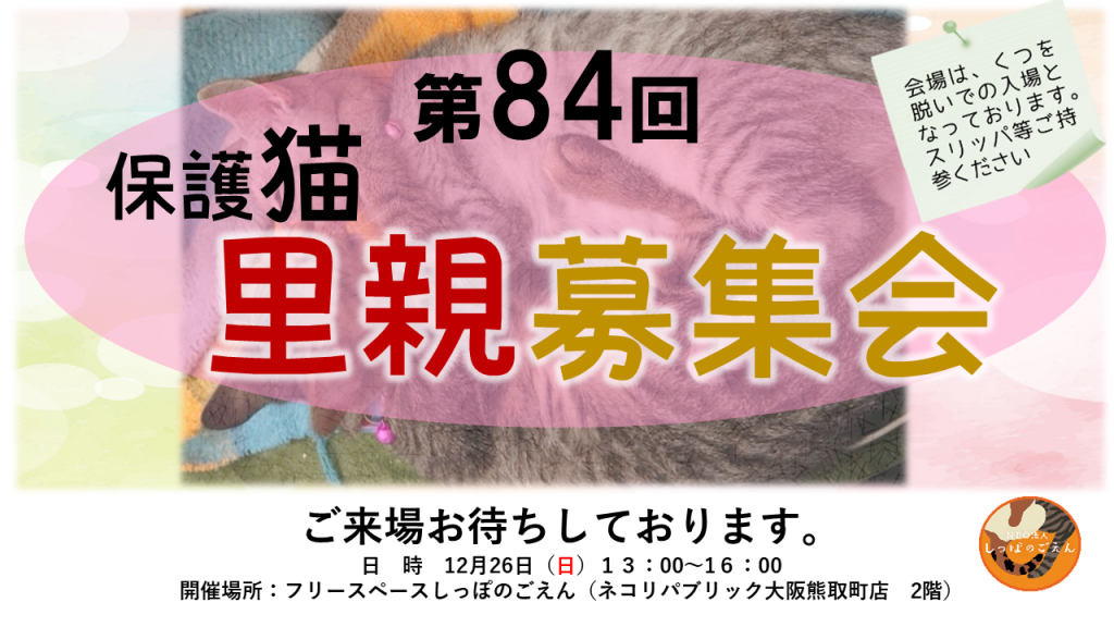 今年最終の里親募集会 2団体12頭の保護猫さんが参加します。